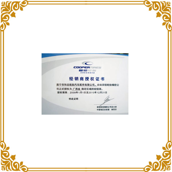 橫濱經(jīng)銷(xiāo)商證書(shū)