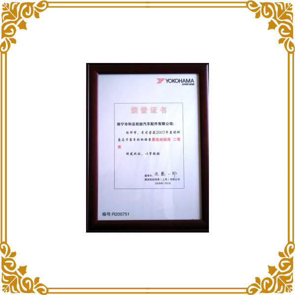 2007年度橫濱卡客車(chē)最佳經(jīng)銷(xiāo)商二等獎(jiǎng)
